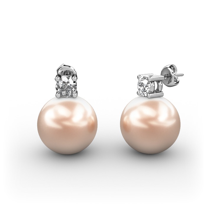Pembe inci ve pırlanta 14 ayar beyaz altın küpe (0.48 karat)