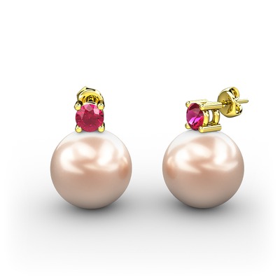 Pembe inci ve rodolit garnet 14 ayar altın küpe