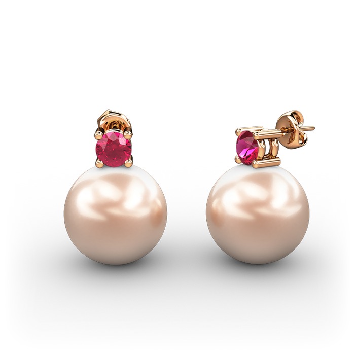 Pembe inci ve rodolit garnet 8 ayar rose altın küpe