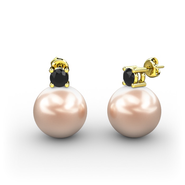 Pembe inci ve siyah zirkon 18 ayar altın küpe