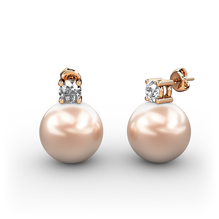 Pembe inci ve swarovski 14 ayar rose altın küpe