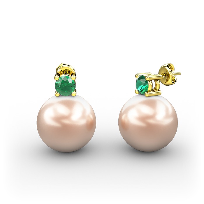 Pembe inci ve yeşil kuvars 8 ayar altın küpe