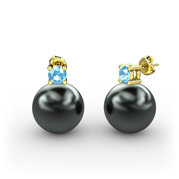 Siyah inci ve akuamarin 8 ayar altın küpe