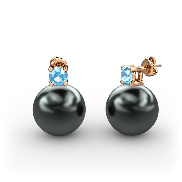 Siyah inci ve akuamarin 8 ayar rose altın küpe