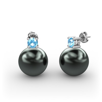 Siyah inci ve akuamarin 925 ayar gümüş küpe