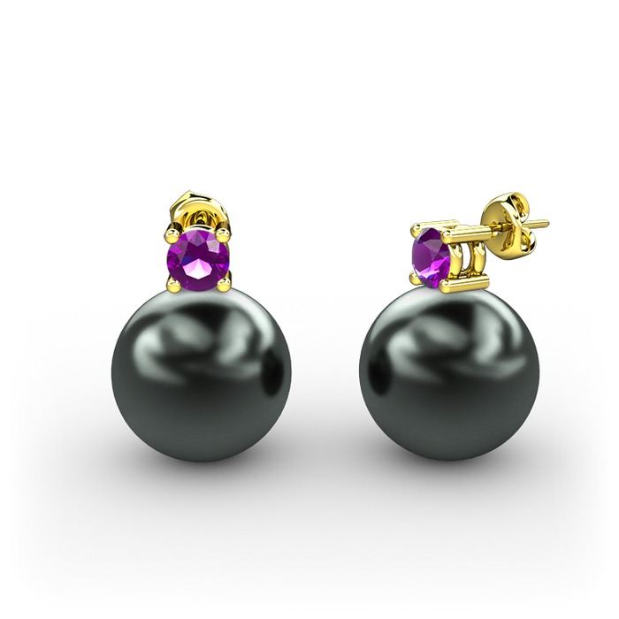 Siyah inci ve ametist 925 ayar altın kaplama gümüş küpe