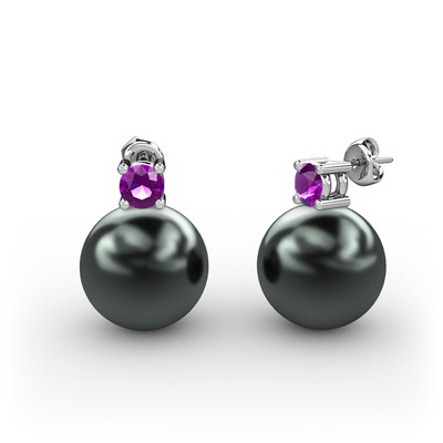 Siyah inci ve ametist 925 ayar gümüş küpe