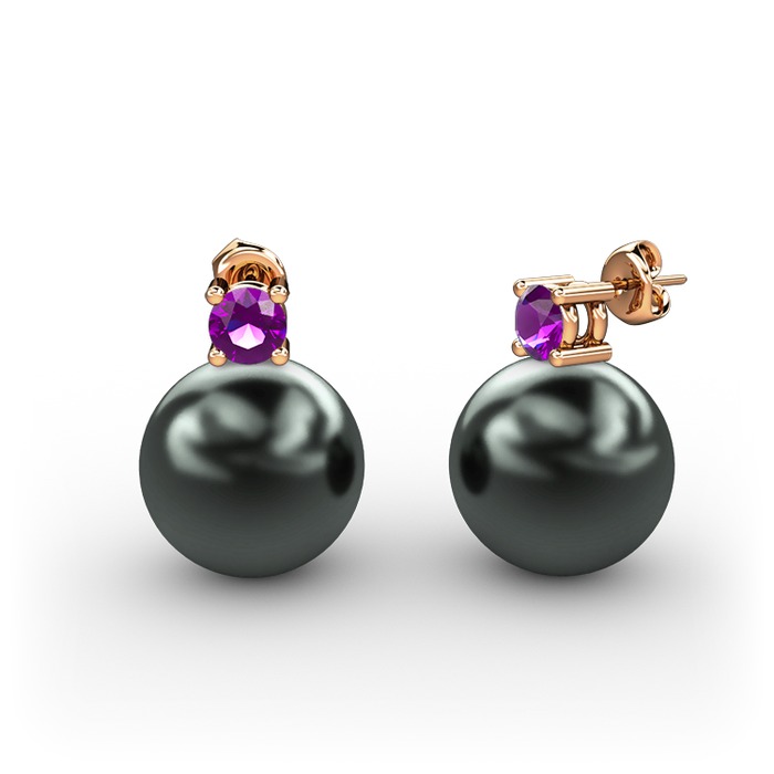 Siyah inci ve ametist 925 ayar rose altın kaplama gümüş küpe