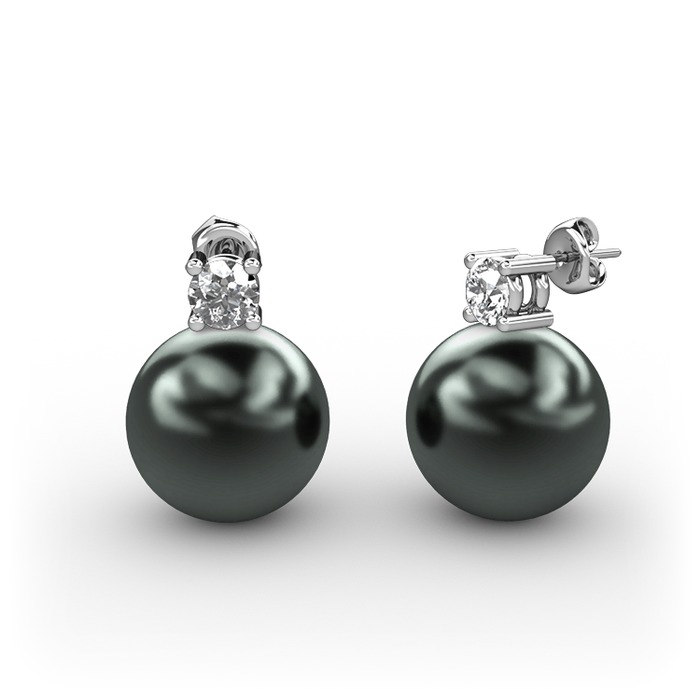 Siyah inci ve beyaz zirkon 14 ayar beyaz altın küpe