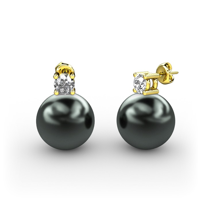 Siyah inci ve beyaz zirkon 925 ayar altın kaplama gümüş küpe