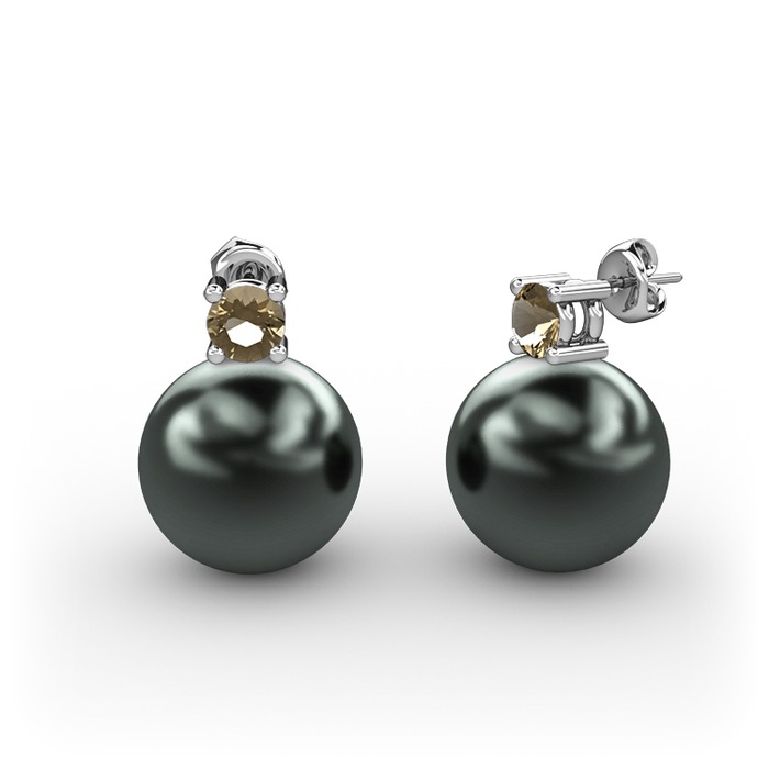 Siyah inci ve dumanlı kuvars 925 ayar gümüş küpe