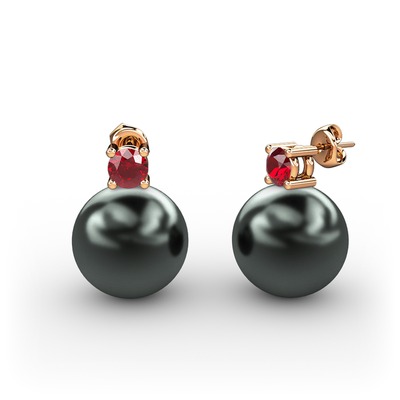 Siyah inci ve garnet 925 ayar rose altın kaplama gümüş küpe