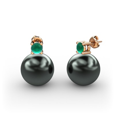 Siyah inci ve kök zümrüt 14 ayar rose altın küpe