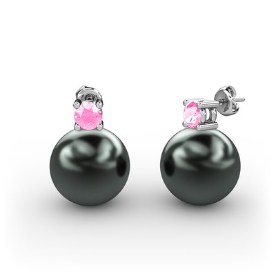 Siyah inci ve pembe kuvars 925 ayar gümüş küpe