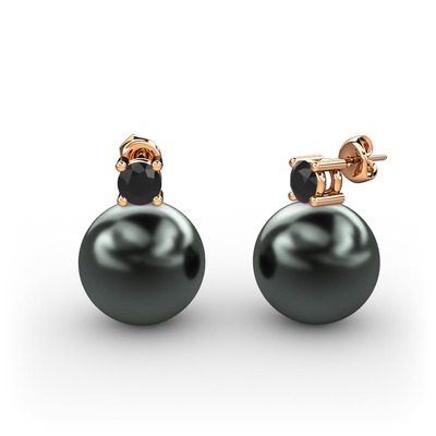 Siyah inci ve siyah zirkon 925 ayar rose altın kaplama gümüş küpe