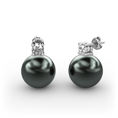 Siyah inci ve swarovski 8 ayar beyaz altın küpe