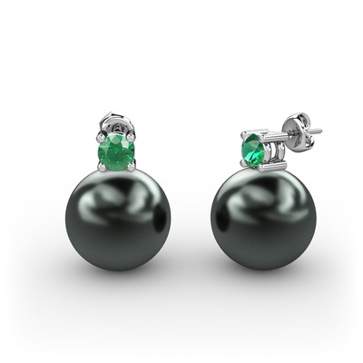 Siyah inci ve yeşil kuvars 925 ayar gümüş küpe