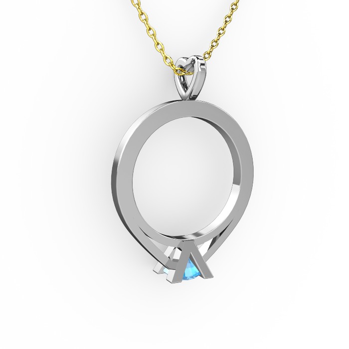 Akuamarin 14 ayar beyaz altın kolye (40 cm altın rolo zincir)