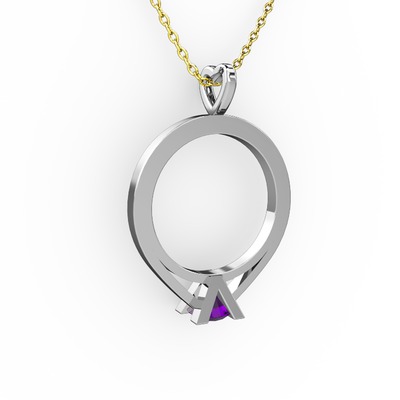 Ametist 925 ayar gümüş kolye (40 cm altın rolo zincir)