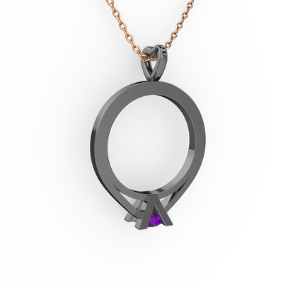Ametist 925 ayar siyah rodyum kaplama gümüş kolye (40 cm rose altın rolo zincir)