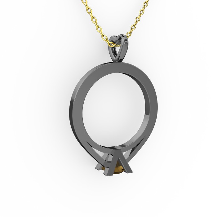 Dumanlı kuvars 925 ayar siyah rodyum kaplama gümüş kolye (40 cm gümüş rolo zincir)