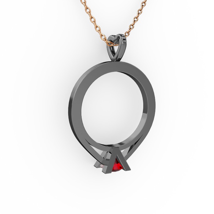 Garnet 925 ayar siyah rodyum kaplama gümüş kolye (40 cm rose altın rolo zincir)