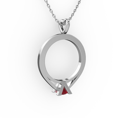 Kök yakut 8 ayar beyaz altın kolye (40 cm beyaz altın rolo zincir)