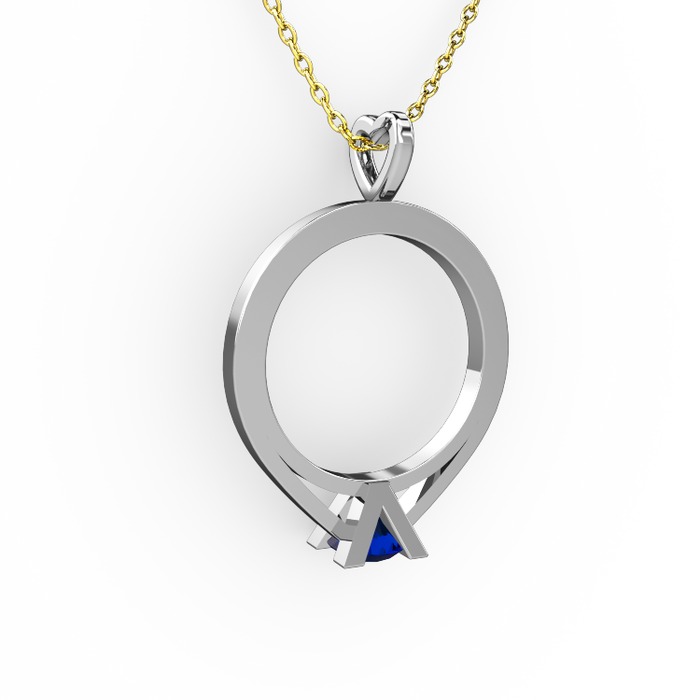 Lab safir 18 ayar beyaz altın kolye (40 cm gümüş rolo zincir)