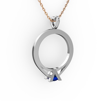 Lab safir 18 ayar beyaz altın kolye (40 cm rose altın rolo zincir)