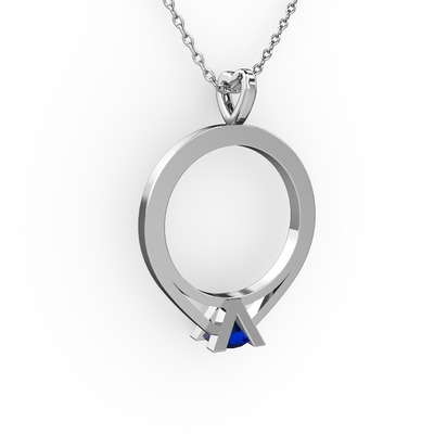 Lab safir 925 ayar gümüş kolye (40 cm gümüş rolo zincir)