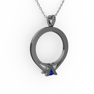 Lab safir 925 ayar siyah rodyum kaplama gümüş kolye (40 cm beyaz altın rolo zincir)