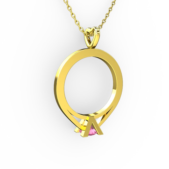 Pembe kuvars 14 ayar altın kolye (40 cm altın rolo zincir)