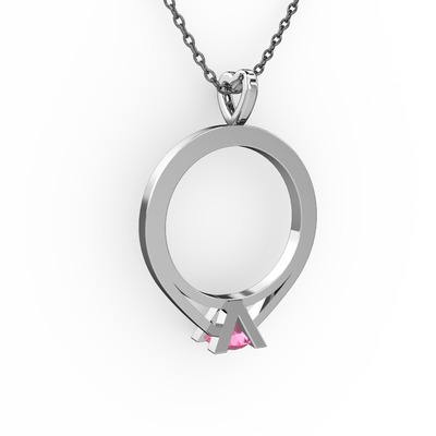 Pembe kuvars 18 ayar beyaz altın kolye (40 cm gümüş rolo zincir)