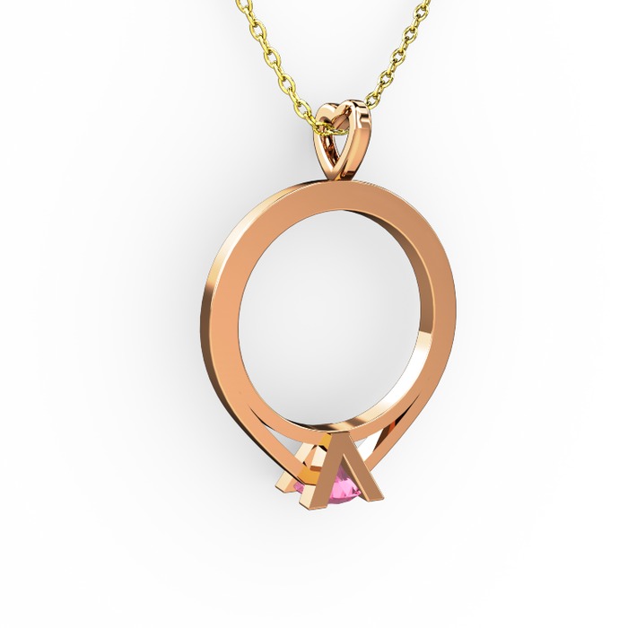 Pembe kuvars 8 ayar rose altın kolye (40 cm altın rolo zincir)
