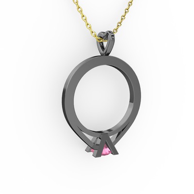 Pembe kuvars 925 ayar siyah rodyum kaplama gümüş kolye (40 cm altın rolo zincir)
