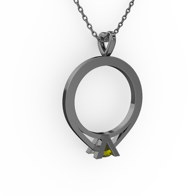 Peridot 925 ayar siyah rodyum kaplama gümüş kolye (40 cm gümüş rolo zincir)