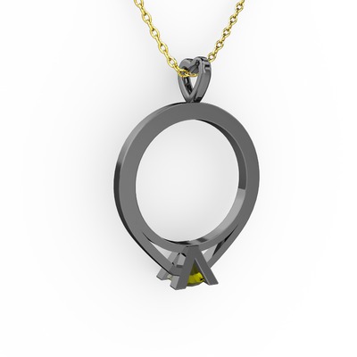 Peridot 925 ayar siyah rodyum kaplama gümüş kolye (40 cm gümüş rolo zincir)