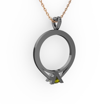 Peridot 925 ayar siyah rodyum kaplama gümüş kolye (40 cm rose altın rolo zincir)