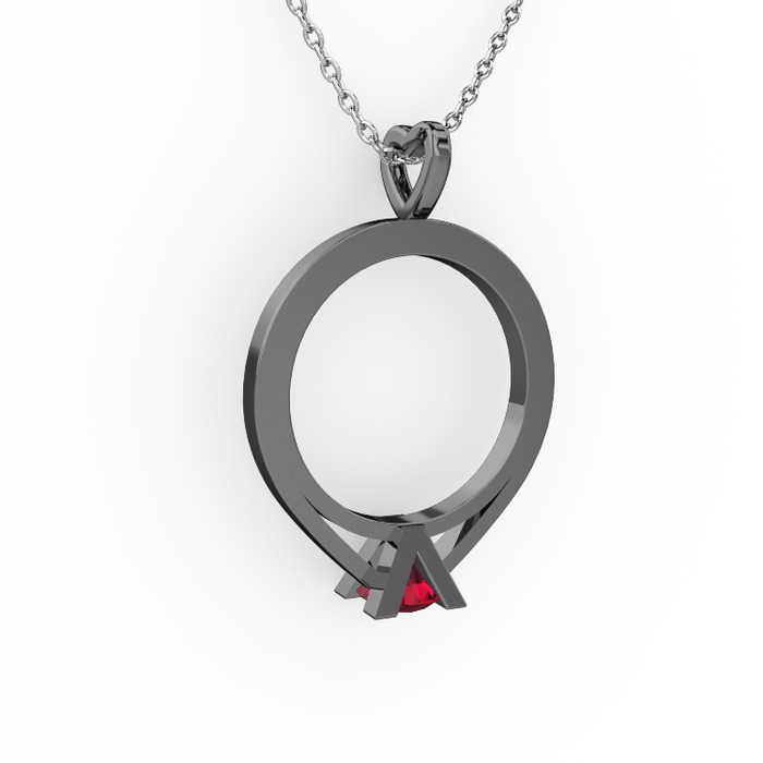 Rodolit garnet 925 ayar siyah rodyum kaplama gümüş kolye (40 cm beyaz altın rolo zincir)