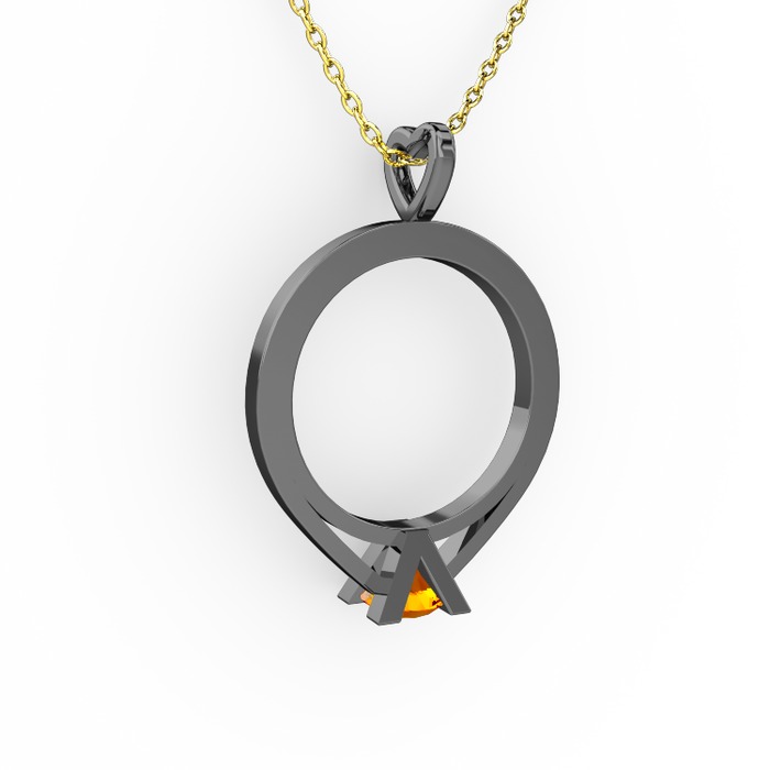 Sitrin 925 ayar siyah rodyum kaplama gümüş kolye (40 cm altın rolo zincir)