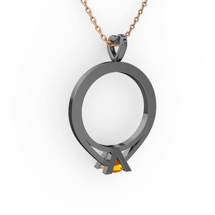 Sitrin 925 ayar siyah rodyum kaplama gümüş kolye (40 cm gümüş rolo zincir)