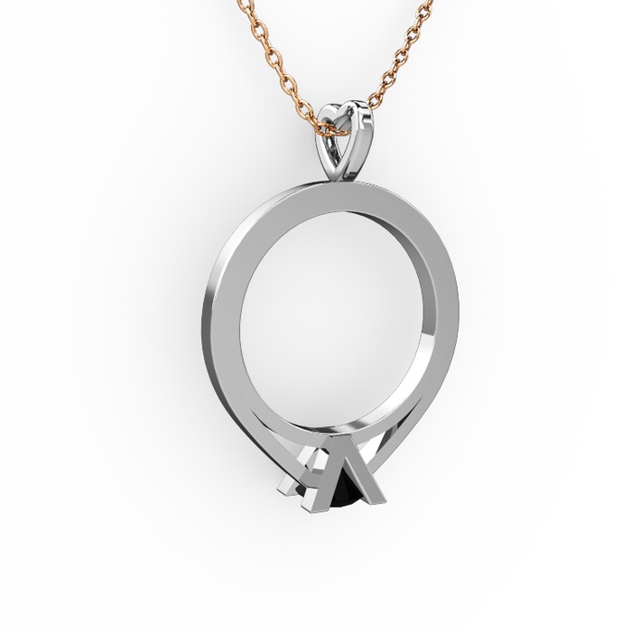 Siyah zirkon 14 ayar beyaz altın kolye (40 cm rose altın rolo zincir)