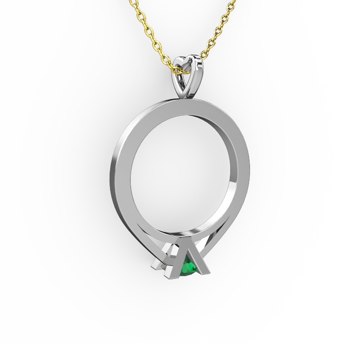Yeşil kuvars 14 ayar beyaz altın kolye (40 cm altın rolo zincir)