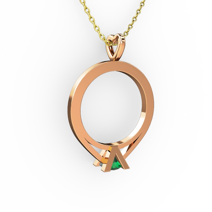Yeşil kuvars 14 ayar rose altın kolye (40 cm gümüş rolo zincir)