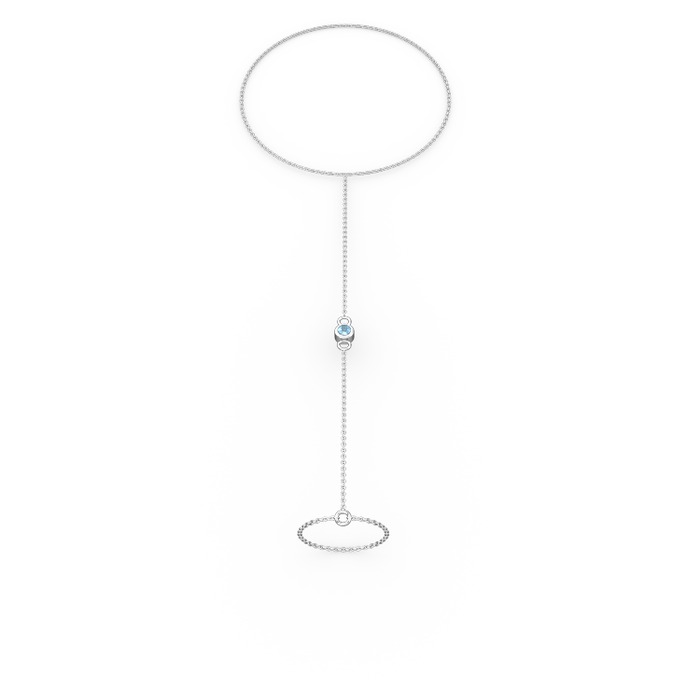 Akuamarin 18 ayar beyaz altın bilezik (40 cm beyaz altın rolo zincir)