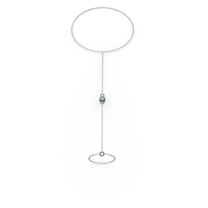 Akuamarin 925 ayar siyah rodyum kaplama gümüş bilezik (40 cm beyaz altın rolo zincir)