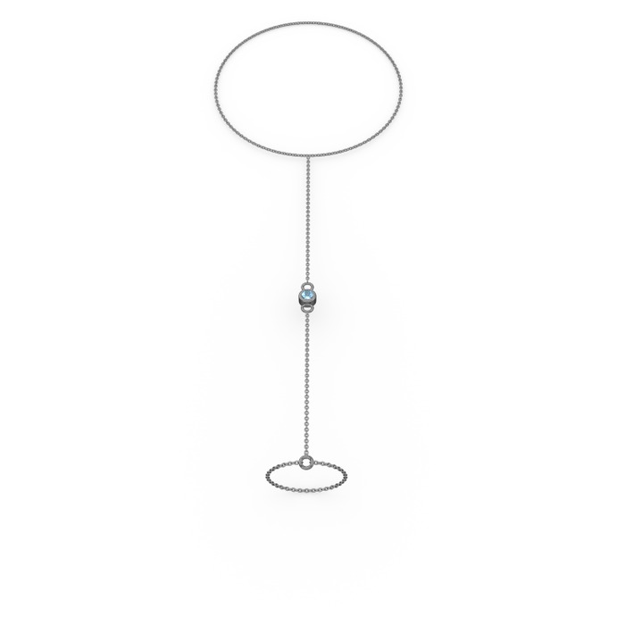 Akuamarin 925 ayar siyah rodyum kaplama gümüş bilezik (40 cm gümüş rolo zincir)