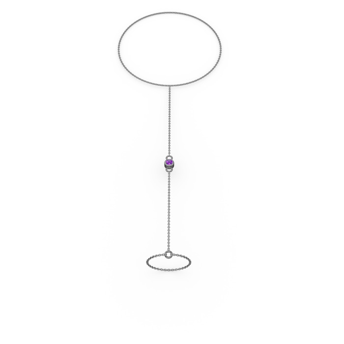 Ametist 925 ayar siyah rodyum kaplama gümüş bilezik (40 cm gümüş rolo zincir)