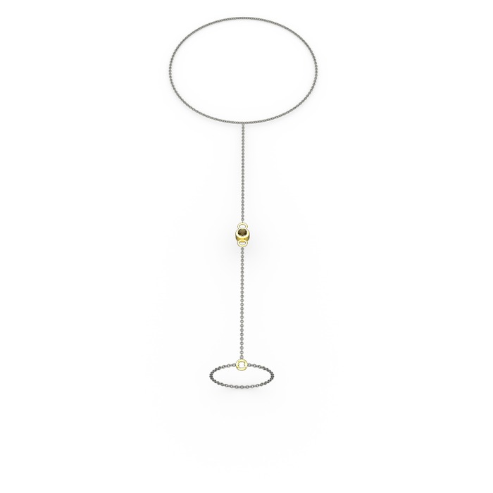 Dumanlı kuvars 925 ayar altın kaplama gümüş bilezik (40 cm gümüş rolo zincir)