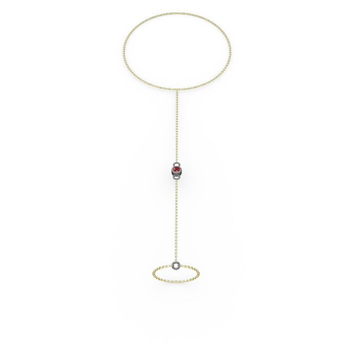 Garnet 925 ayar siyah rodyum kaplama gümüş bilezik (40 cm altın rolo zincir)
